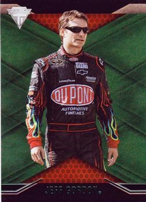 The Jeff Gordon 2022 Chronicles NASCAR #19 Titanium Green card is 1 of 141 Jeff Gordon's card variations in the 2022 Chronicles NASCAR set being tracked by Sports Card Investor, including Black, Black Green, Clearly Donruss, Clear Vision, and Crusade.
