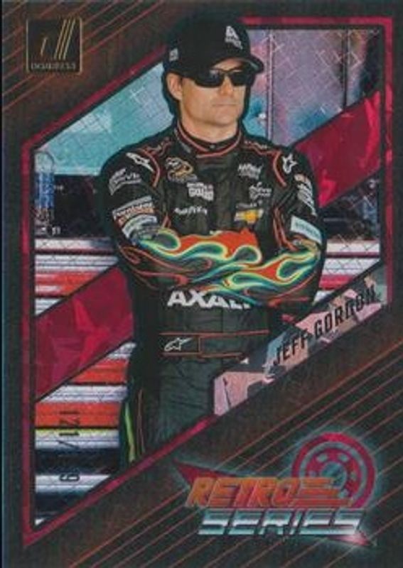 The Jeff Gordon 2024 Donruss NASCAR #18 Retro Series Red Ice /149 card is 1 of 103 Jeff Gordon's card variations in the 2024 Donruss NASCAR set being tracked by Sports Card Investor, including #194 Base, #70 Base, #194 Optic, #70 Optic, and #70 Optic Black Pandora.