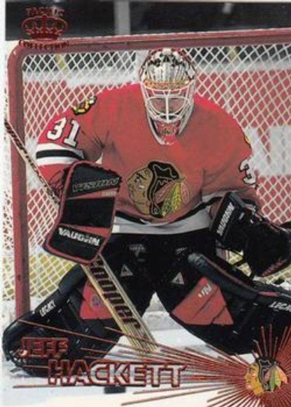 The Jeff Hackett 1997 Pacific Crown Collection #160 Copper card is 1 of 7 Jeff Hackett's card variations in the 1997 Pacific Crown Collection set being tracked by Sports Card Investor, including Base, Emerald Green, Ice Blue, Red, and Silver.