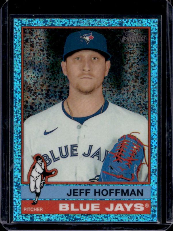 The Jeff Hoffman 2025 Topps Heritage #431 Chrome - Light Blue Sparkle Refractor card is 1 of 24 Jeff Hoffman's card variations in the 2025 Topps Heritage set being tracked by Sports Card Investor, including Base, Black Border, Dark Blue Border, Dark Green Border, and Dark Yellow Border.