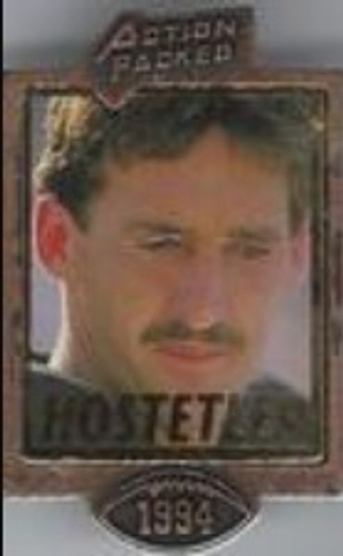 The Jeff Hostetler 1994 Action Packed Badge of Honor Pins Base card is 1 of 2 Jeff Hostetler's card variations in the 1994 Action Packed Badge of Honor Pins set being tracked by Sports Card Investor, including Gold.