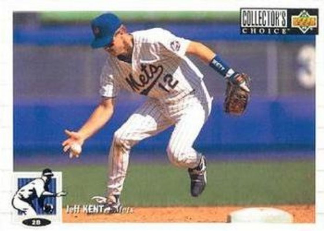 The Jeff Kent 1994 Upper Deck Collector's Choice #159 Base card is 1 of 3 Jeff Kent's card variations in the 1994 Upper Deck Collector's Choice set being tracked by Sports Card Investor, including Gold Signatures, and Silver Signatures.