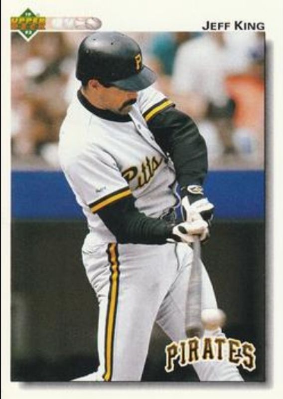 The Jeff King 1992 Upper Deck #111 Base card is 1 of 2 Jeff King's card variations in the 1992 Upper Deck set being tracked by Sports Card Investor, including Gold Hologram.