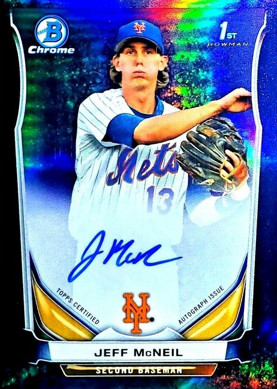 This card is 1 of 15 Jeff McNeil's card variations in the 2014 Bowman Chrome set being tracked by Sports Card Investor, including Prospect Auto (1st), Prospects (1st), Prospect Auto - Refractor /500 (1st), Prospect Auto - Blue Refractor /150 (1st), and Prospect Auto - Green Refractor /75 (1st).