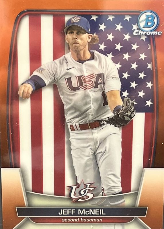 2023 Bowman Chrome Jeff McNeil United States WBC Orange Refractor /25 SP Mets