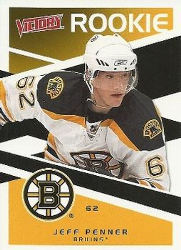 The Jeff Penner 2010 Upper Deck Victory #206 Base Rookie card is 1 of 8 Jeff Penner's card variations in the 2010 Upper Deck Victory set being tracked by Sports Card Investor, including Black, Gold, Red, Printing Plates Black /1, and Printing Plates Cyan /1.