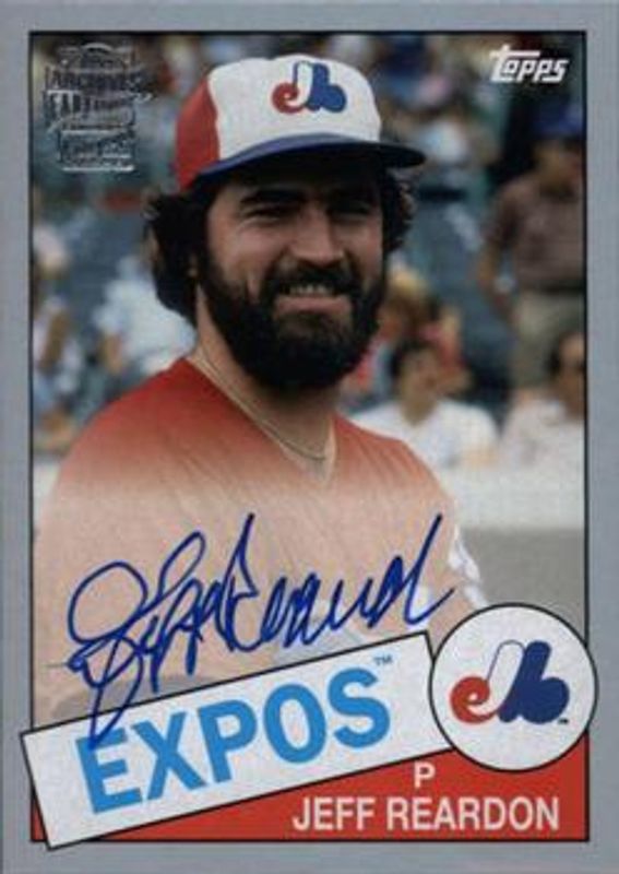 The Jeff Reardon 2019 Topps Archives #FFA-JRE Fan Favorite Autographs - Silver /99 card is 1 of 16 Jeff Reardon's card variations in the 2019 Topps Archives set being tracked by Sports Card Investor, including 50th Anniversary of the Montréal Expos, 50th Anniversary of the Montréal Expos Autographs, Fan Favorite Autographs, 50th Anniversary of the Montréal Expos - Blue Foil Logo /150, and Fan Favorite Autographs - Purple /150.