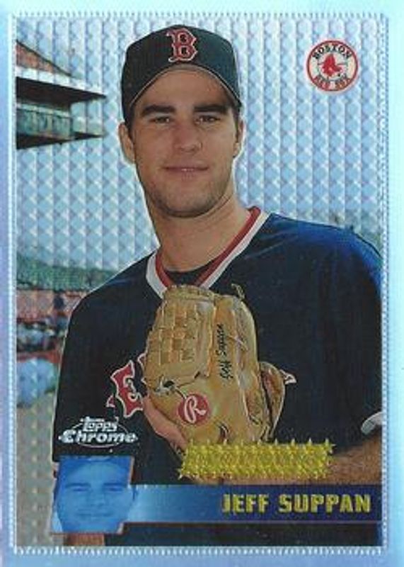 The Jeff Suppan 1996 Topps Chrome #139 Refractor Rookie card is 1 of 2 Jeff Suppan's card variations in the 1996 Topps Chrome set being tracked by Sports Card Investor, including Base.