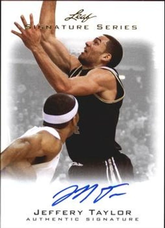 The Jeff Taylor 2012 Leaf Signature Series #BA-JT2 Base Rookie card is 1 of 16 Jeff Taylor's card variations in the 2012 Leaf Signature Series set being tracked by Sports Card Investor, including Silver /99, Gold /25, Blue /10, Red /5, and Printing Plates Black /1.