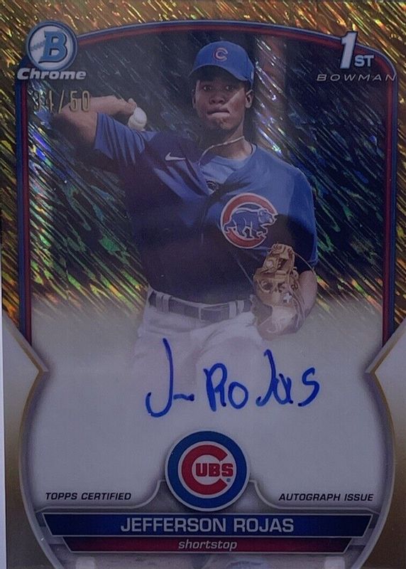 2023 1st Bowman Chrome Jefferson Rojas Gold Shimmer Refractor Auto #/50 Cubs