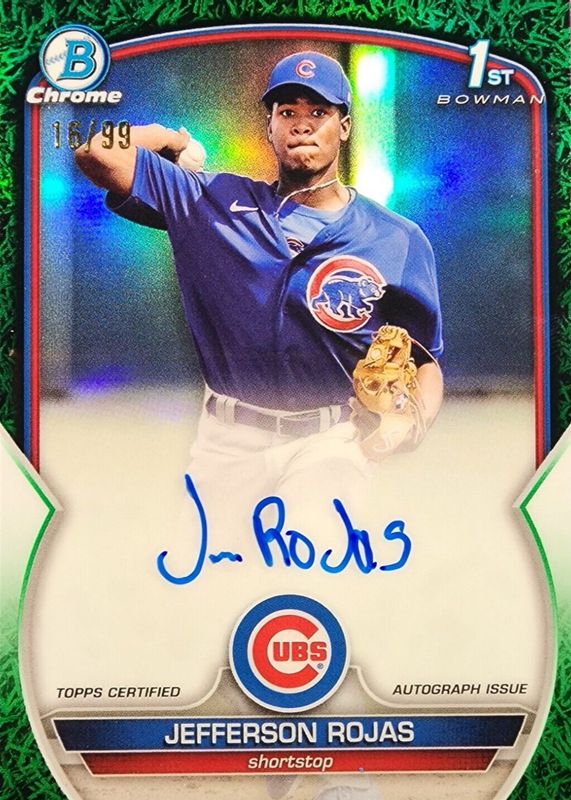 2023 Bowman Chrome Jefferson Rojas Auto Green /Grass /99 1st CPA-JR Cubs