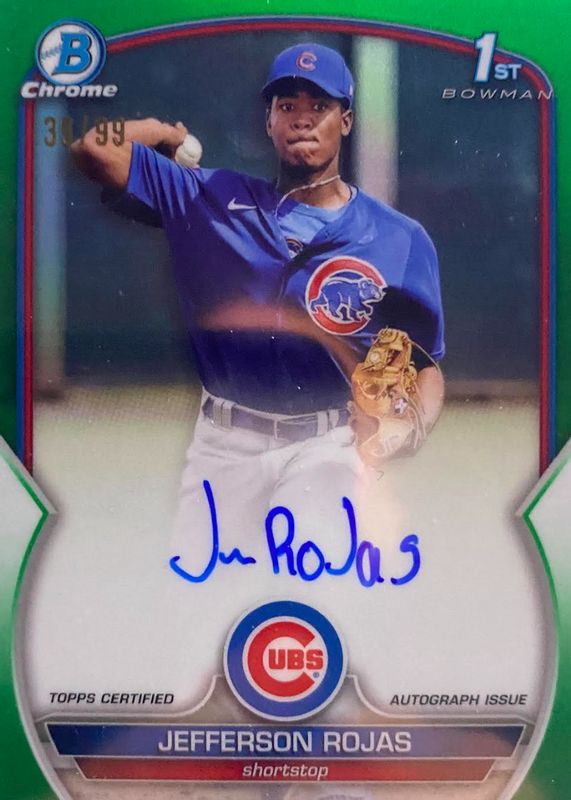 2023 Bowman Jefferson Rojas Chrome 1st Green Refractor Auto /99 Cubs CPA-JR