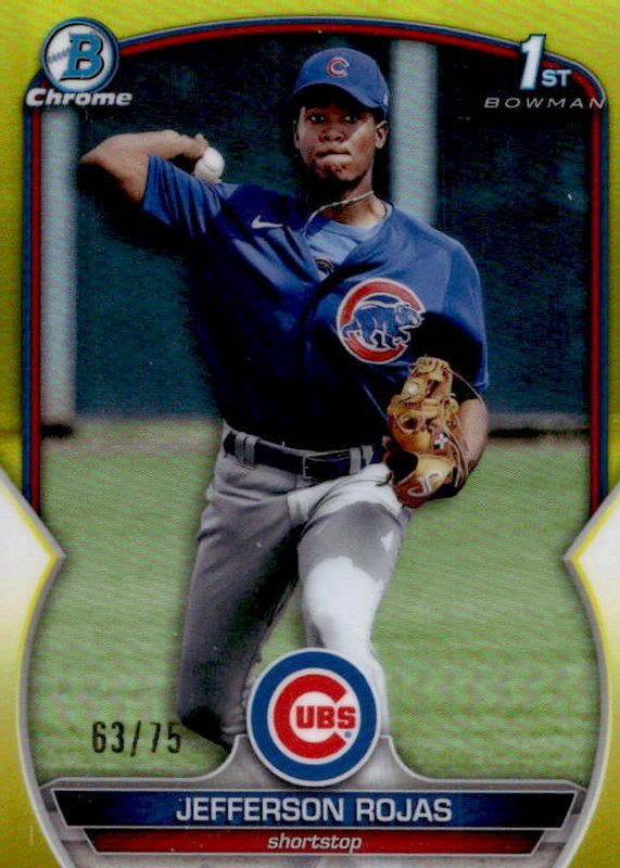Jefferson Rojas 2023 Bowman Chrome 1st BCP-70 YELLOW REFRACTOR SP #48/75 Cubs