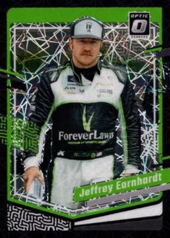 The Jeffrey Earnhardt 2024 Donruss NASCAR #3 Optic Black Velocity /39 card is 1 of 73 Jeffrey Earnhardt's card variations in the 2024 Donruss NASCAR set being tracked by Sports Card Investor, including #3 Base, #134 Base, #134 Optic, #3 Optic, and #134 Optic Black Pandora.