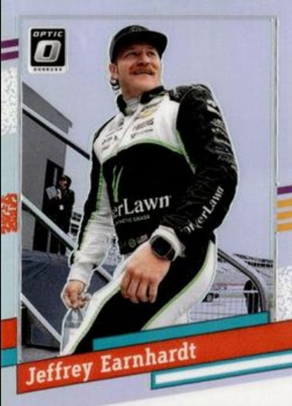 The Jeffrey Earnhardt 2024 Donruss NASCAR #134 Optic Holo card is 1 of 73 Jeffrey Earnhardt's card variations in the 2024 Donruss NASCAR set being tracked by Sports Card Investor, including #3 Base, #134 Base, #134 Optic, #3 Optic, and #134 Optic Black Pandora.