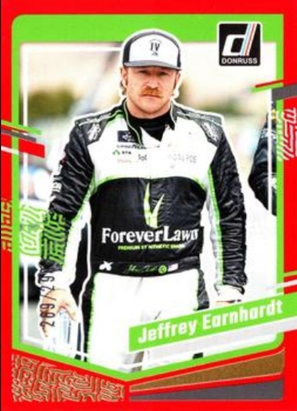 The Jeffrey Earnhardt 2024 Donruss NASCAR #3 Red /299 card is 1 of 73 Jeffrey Earnhardt's card variations in the 2024 Donruss NASCAR set being tracked by Sports Card Investor, including #3 Base, #134 Base, #134 Optic, #3 Optic, and #134 Optic Black Pandora.