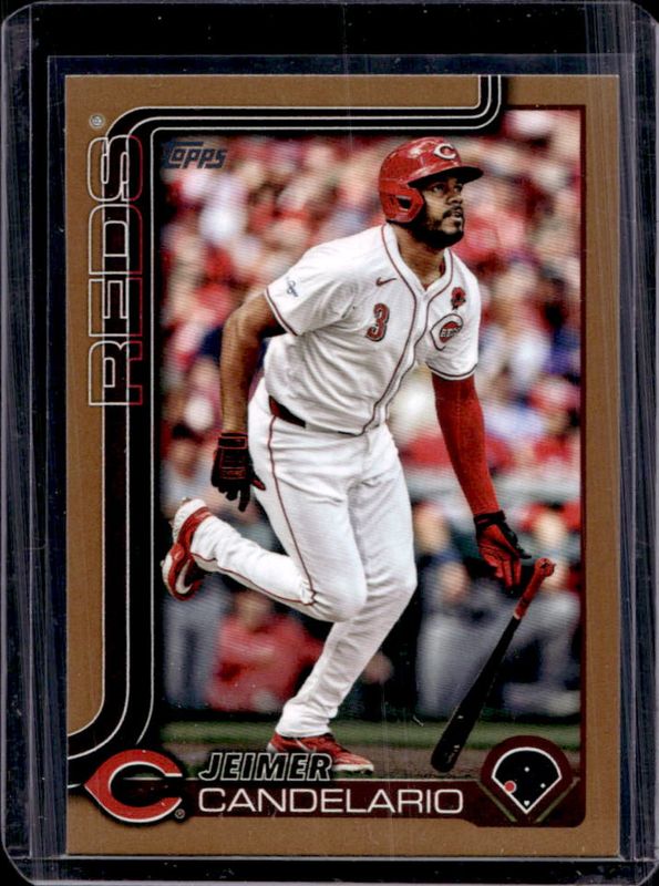 The Jeimer Candelario 2025 Topps #619 Gold /2025 card is 1 of 56 Jeimer Candelario's card variations in the 2025 Topps set being tracked by Sports Card Investor, including Base, Aqua Holo Foil, Diamante Foil, Holo Foil, and Pink Diamante Foil.