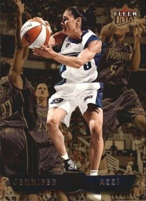 The Jennifer Azzi 2002 Fleer Ultra WNBA #61 Gold Medallion card is 1 of 4 Jennifer Azzi's card variations in the 2002 Fleer Ultra WNBA set being tracked by Sports Card Investor, including Base, Summer of Love, and Summer of Love - Memorabilia.