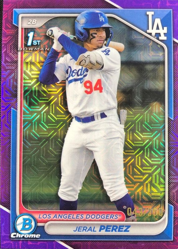 2024 Bowman Chrome Jeral Perez Purple Mojo Refractor 1st Prospect #/250 Dodgers