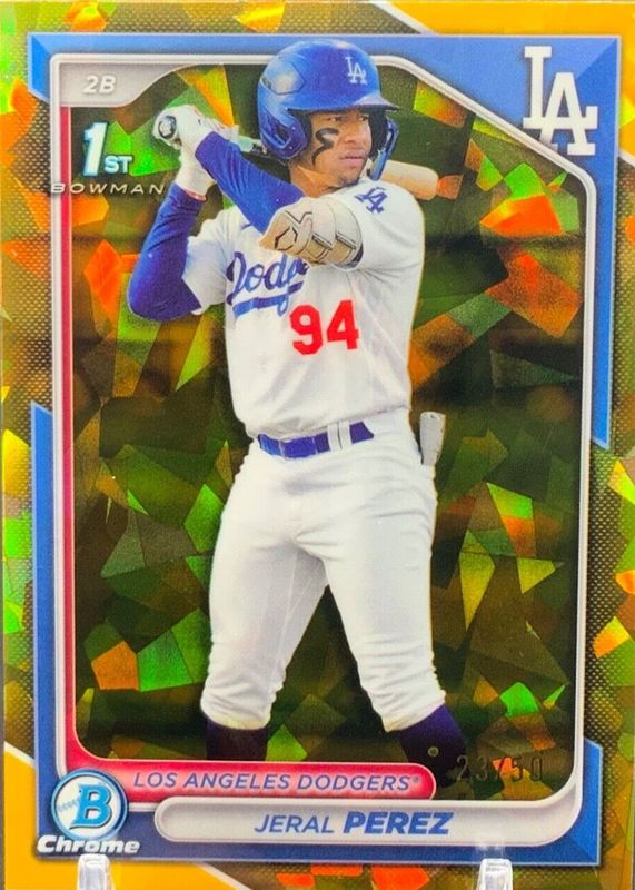 2024 Bowman Chrome Sapphire Jeral Perez Refractor 1st Prospect Gold #/50 Dodgers