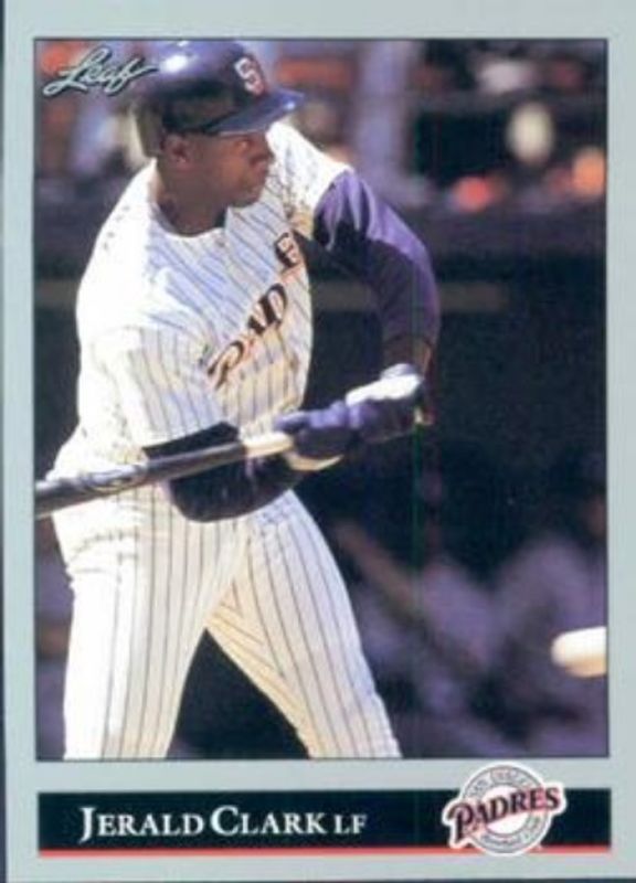 The Jerald Clark 1992 Leaf #55 Base card is 1 of 2 Jerald Clark's card variations in the 1992 Leaf set being tracked by Sports Card Investor, including Black & Gold.
