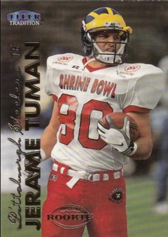 The Jerame Tuman 1999 Fleer Tradition #296 Base Rookie card is 1 of 3 Jerame Tuman's card variations in the 1999 Fleer Tradition set being tracked by Sports Card Investor, including Blitz Collection, and Trophy Collection /20.
