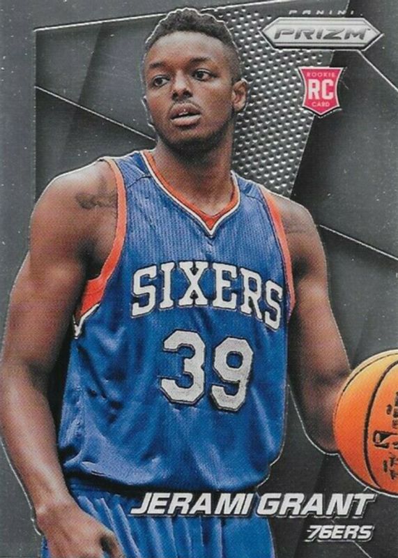 This card is 1 of 23 Jerami Grant's card variations in the 2014 Prizm set being tracked by Sports Card Investor, including Blue Green Mosaic, Blue Mojo, Blue Wave, Green, and Red White Blue Pulsar.