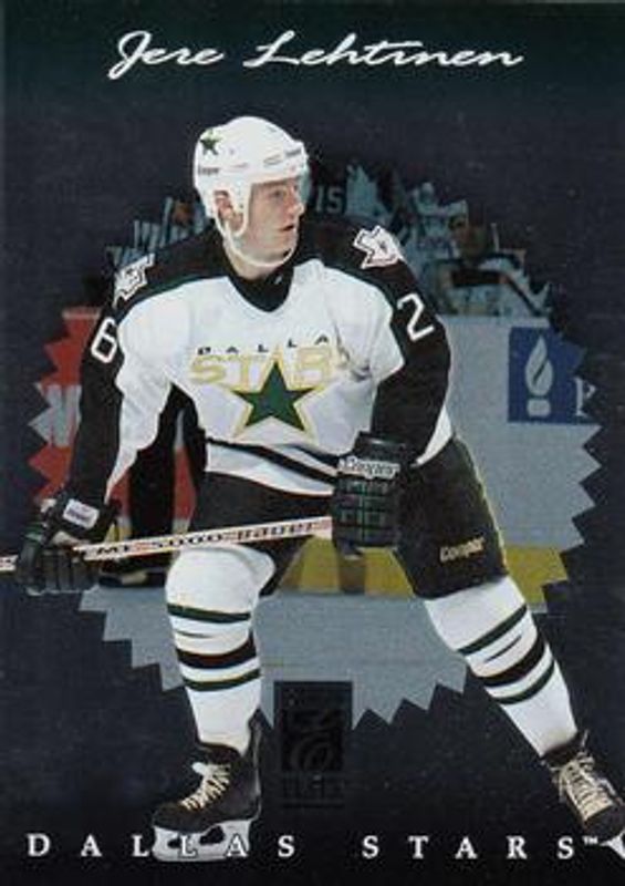 The Jere Lehtinen 1996 Donruss Elite #77 Base card is 1 of 3 Jere Lehtinen's card variations in the 1996 Donruss Elite set being tracked by Sports Card Investor, including Die-Cut, and Aspirations /3000.