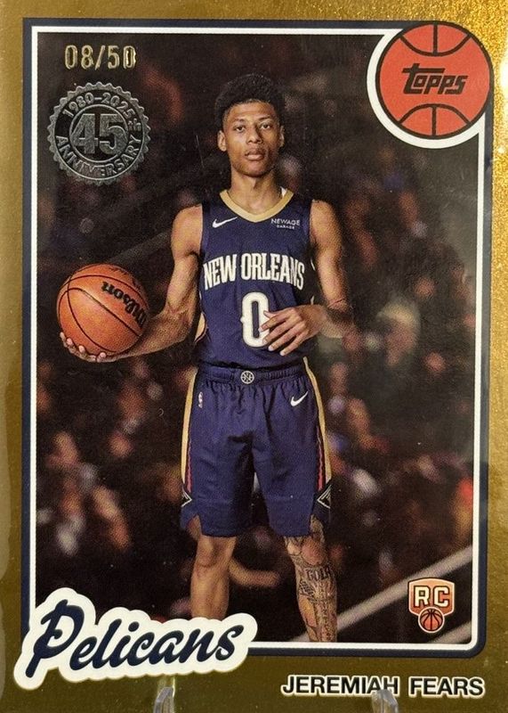 Jeremiah Fears 13/50 1980-81 Rookie 2025-26 Topps Gold Foil 80BK-98 RC Pelicans