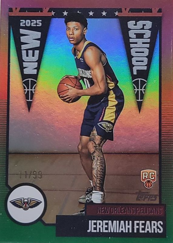 2025-26 Topps Basketball Jeremiah Fears RC Green New School /99 Pelicans Rookie