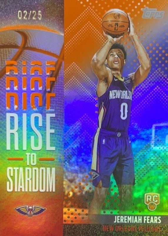 The Jeremiah Fears 2025 Topps #RTS-7 Rise to Stardom - Orange Rainbow /25 Rookie card in Raw condition has not changed in price in the last 30 days and was last sold for $36.84 .