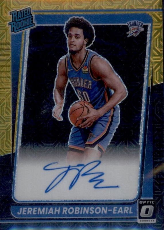 This card is 1 of 78 Jeremiah Robinson-Earl's card variations in the 2021 Optic set being tracked by Sports Card Investor, including Base, Blue Pulsar, Blue Velocity, Checkerboard, and Choice.