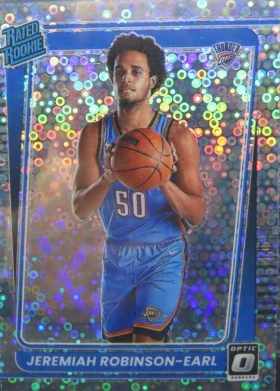 This card is 1 of 43 Jeremiah Robinson-Earl's card variations in the 2021 Optic set being tracked by Sports Card Investor, including Base, Blue Pulsar, Blue Velocity, Checkerboard, and Choice Red & Green.