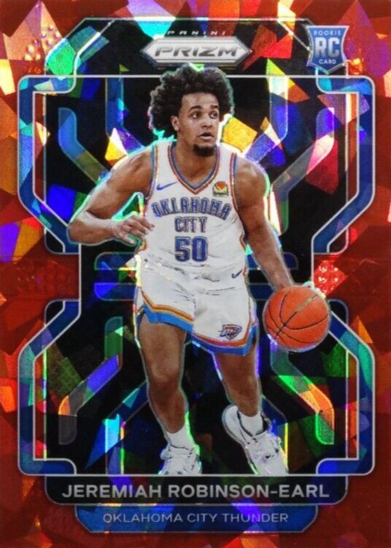 2021-22 PANINI PRIZM JEREMIAH ROBINSON-EARL RED CRACKED ICE ROOKIE #319 THUNDER