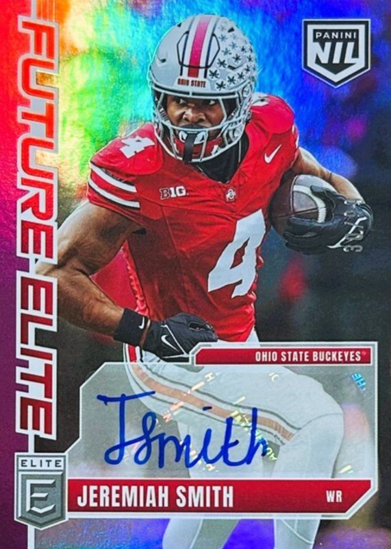 This card is 1 of 4 Jeremiah Smith's card variations in the 2025 Elite set being tracked by Sports Card Investor, including Future Elite Autographs /149, Future Elite Autographs - Gold /5, and Future Elite Autographs - Black /1.