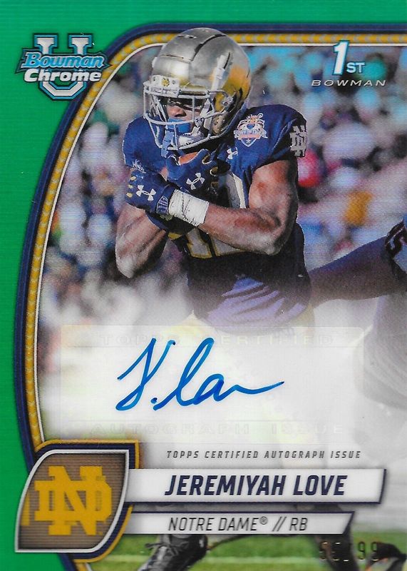 2024 Bowman Chrome U Jeremiyah Love Rookie Green Refractor Auto /99 Notre Dame