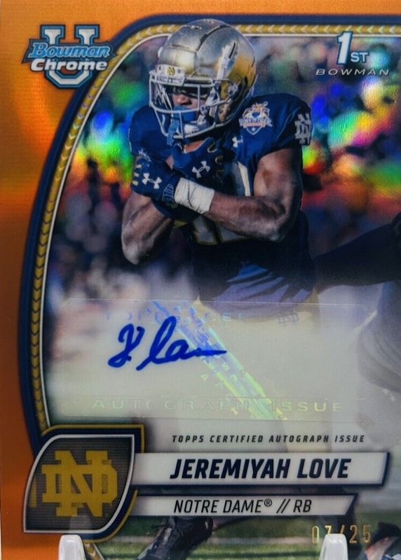 2024 Bowman U Chrome Jeremiyah Love Notre Dame Auto Orange Refractor 13/25🔥🔥🔥