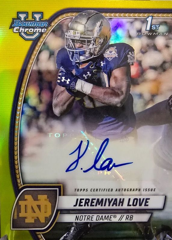 2024 Bowman U Chrome 1st JEREMIYAH LOVE Notre Dame Rookie Auto Yellow SSP #’D 75