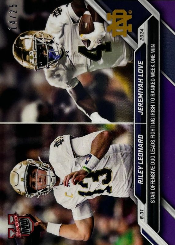 Best Prices Available For Sale of Jeremiyah Love / Riley Leonard 2024 Bowman U Now #6 Purple /25