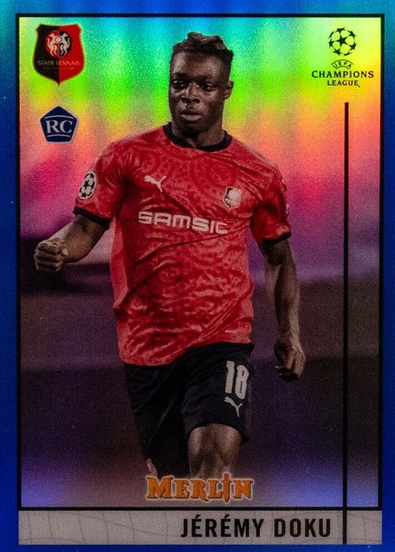 Jeremy Doku 2020 Topps Merlin Chrome UEFA Champions League #64 Blue Refractor /75 Rookie RAW Price Guide
