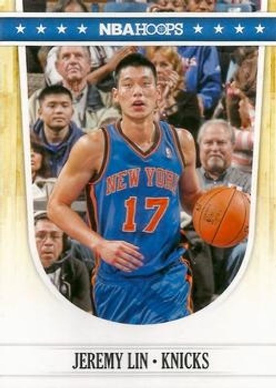 The Jeremy Lin 2011 Hoops #67 Base card is 1 of 5 Jeremy Lin's card variations in the 2011 Hoops set being tracked by Sports Card Investor, including Artist's Proofs, Autographs, Glossy, and Artist's Proofs Black /1.