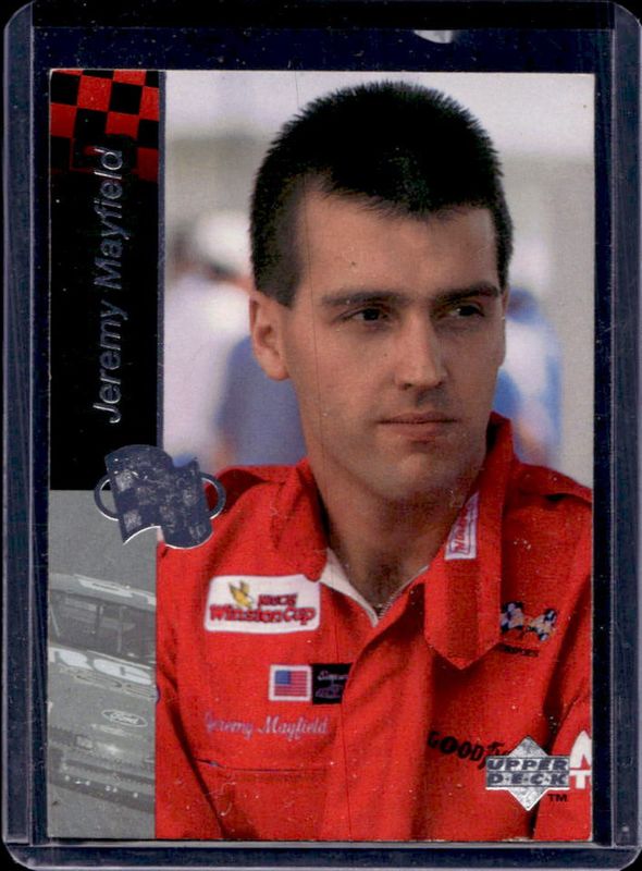 The Jeremy Mayfield 1995 Upper Deck #227 1995 Upper Deck Flagship card is 1 of 16 Jeremy Mayfield's card variations in the 1995 Upper Deck set being tracked by Sports Card Investor, including #227 Gold Signatures Electric Gold, #269 Gold Signatures Electric Gold, #43 Gold Signatures Electric Gold, #67 Gold Signatures Electric Gold, and #111 Gold Signatures Electric Gold.