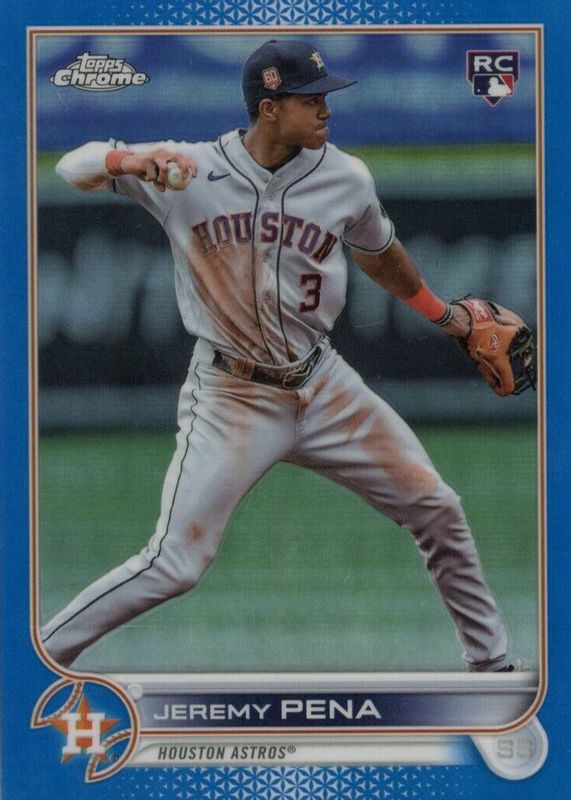 The Jeremy Pena 2022 Topps Chrome Update #USC136 Blue Refractor /199 Rookie card in Raw condition has not changed in price in the last 30 days and was last sold for $22.50 .
