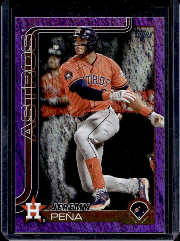 The Jeremy Pena 2025 Topps #307 Purple Holo Foil /250 card is 1 of 85 Jeremy Pena's card variations in the 2025 Topps set being tracked by Sports Card Investor, including Base, Aqua Holo Foil, Diamante Foil, Holo Foil, and Pink Diamante Foil.