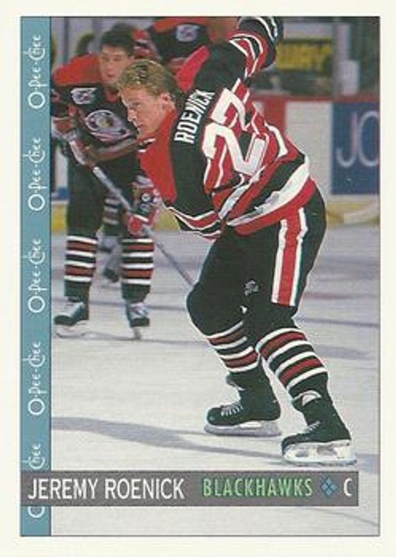 The Jeremy Roenick 1992 O-Pee-Chee #345 Base card is 1 of 3 Jeremy Roenick's card variations in the 1992 O-Pee-Chee set being tracked by Sports Card Investor, including Base, and 25th Anniversary.