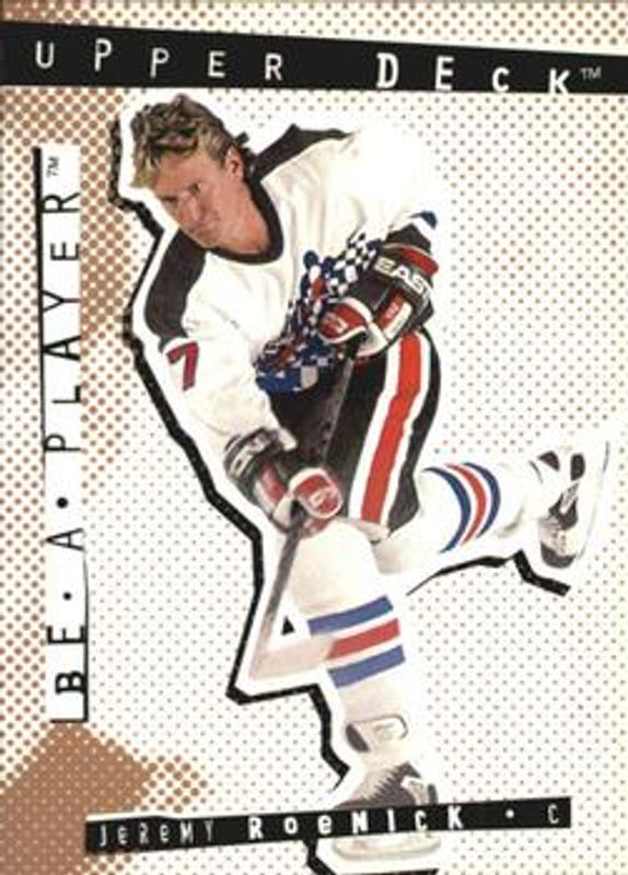 The Jeremy Roenick 1994 Upper Deck Be a Player #R12 Base card is 1 of 4 Jeremy Roenick's card variations in the 1994 Upper Deck Be a Player set being tracked by Sports Card Investor, including Base, Autographs, and Up Close & Personal.