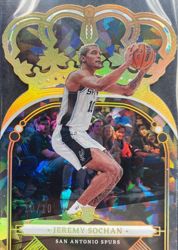 The Jeremy Sochan 2022 Crown Royale #53 Gold Crystal /10 Rookie card in Raw condition has not changed in price in the last 30 days and was last sold for $102.50 .