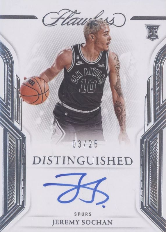 JEREMY SOCHAN 2022-23 PANINI FLAWLESS DISTINGUISHED ROOKIE AUTO 23/25 SPURS RC