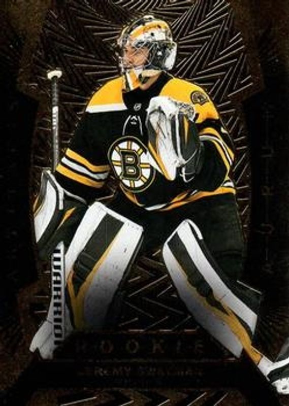 The Jeremy Swayman 2021 Upper Deck Artifacts #A-40 Aurum Rookie card is 1 of 36 Jeremy Swayman's card variations in the 2021 Upper Deck Artifacts set being tracked by Sports Card Investor, including Base /999, Neon Green, Rose Gold, Turquoise, and Ruby /499.