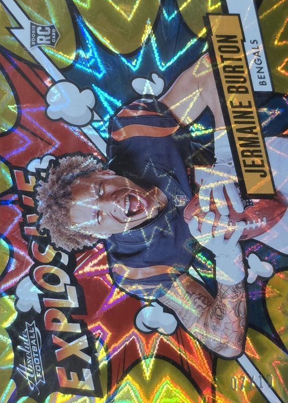 This card is 1 of 3 Jermaine Burton's card variations in the 2024 Absolute set being tracked by Sports Card Investor, including Explosive /(SSP), and Explosive - Green /1.